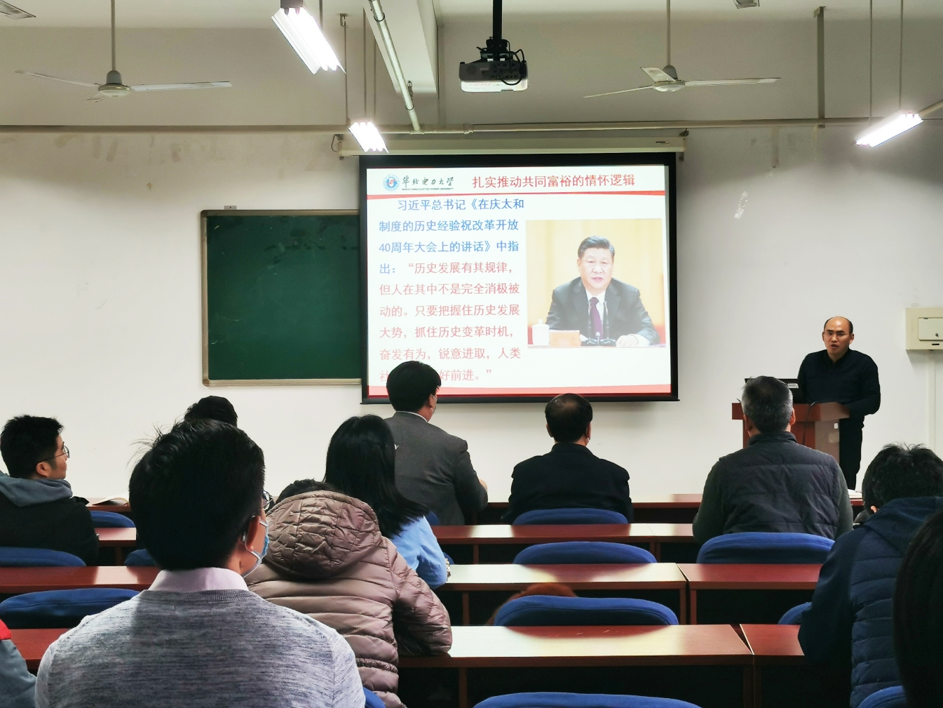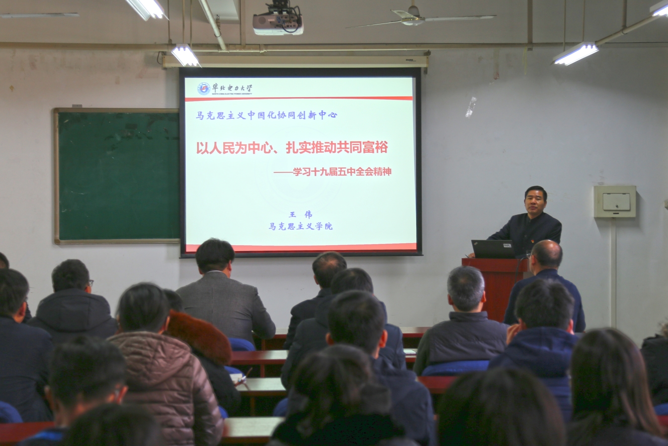 为深入学习党的十九届五中全会精神,充分调动广大干部师生学习的积极性主动性创造性,切实提升学习效果,把思想和行动统一到党中央决策部署上来,12月11日下午澳门六合彩管家婆 、新能源澳门六合彩管家婆 党委联合举办了“十九届五中全会精神学习宣传”报告会。报告会邀请到了马克思主义澳门六合彩管家婆 院长王伟教授就“十九届五中全会”会议精神进行解读,两院教职工和学生党支部书记参加了此次报告会。