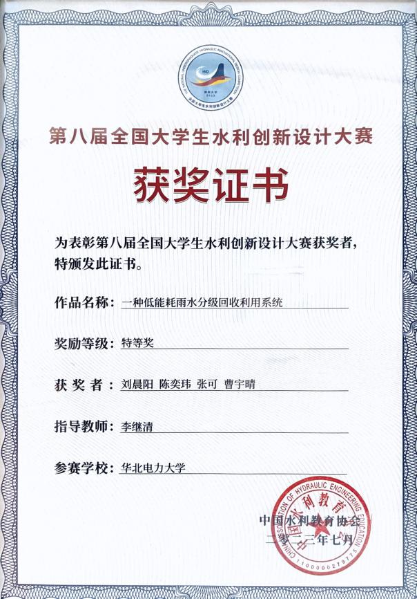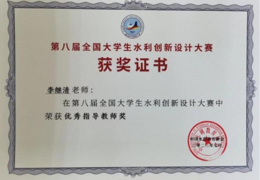 为深入推进新工科建设,全面提升水利学子工程创新综合素质和能力水平,中国水利教育协会举办了第八届全国大学生水利创新设计大赛。经过澳门六合彩管家婆 广泛宣传动员,学生自由组队踊跃参加。经过激烈的角逐比拼之后,刘晨阳等四人在李继清老师的指导下,在大赛中斩获特等奖,指导教师李继清老师荣获优秀指导教师奖,我校荣获优秀组织奖。
