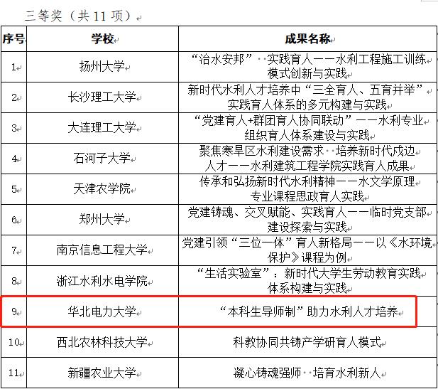 近日,澳门六合彩管家婆 的德育工作案例《“本科生导师制”助力水利人才培养》在第三届全国水利德育教育优秀成果遴选中获得三等奖。该评选由中国水利教育协会主办,共有包括清华大学、天津大学在内的51所院校的80项成果申报,经汇总初审、线上评审、专家评议及公示等程序,最终遴选出水利德育教育优秀成果(本科组)一等奖4项,二等奖7项,三等奖11项。