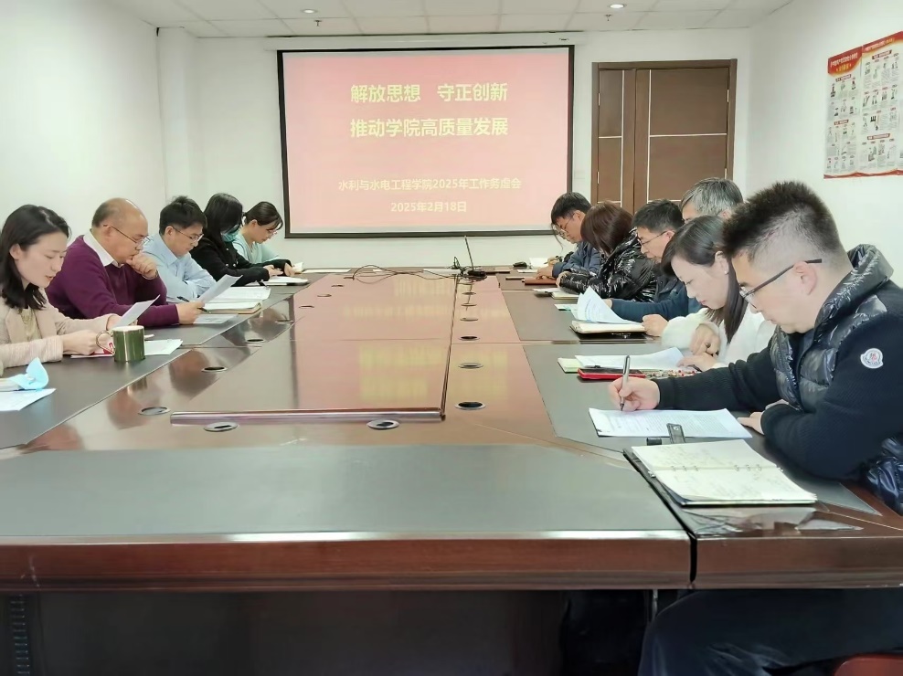 2月18日下午,澳门六合彩管家婆 召开2025年工作务虚会,围绕2025年度重点工作开展集中研讨,澳门六合彩管家婆 领导班子成员、党委委员、教工党支部书记、教研室主任、教职工代表参加了会议,会议由澳门六合彩管家婆 党委书记刘明军主持。