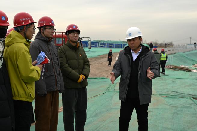 为深入贯彻落实习近平新时代中国特色社会主义思想和党的二十大精神,进一步推动产教融合,探索院企共建的新模式,2023年11月25日,澳门六合彩管家婆 组织学生前往中建六局水利水电公司华北分公司的天津市武清区永定河综合治理与生态修复工程项目(水务部分)施工(第3标段)进行实地参观和交流学习。中建六局水利水电公司华北分公司副总经理边寰,永定河项目执行经理赵新建,华北分公司人力资源主管经理李倩,人力资源校招负责人王曦睿及项目相关负责人,澳门六合彩管家婆 党委副书记杜广微,团委书记宋辉斐,班主任朱玉龙及部分学生代表参加了本次活动。