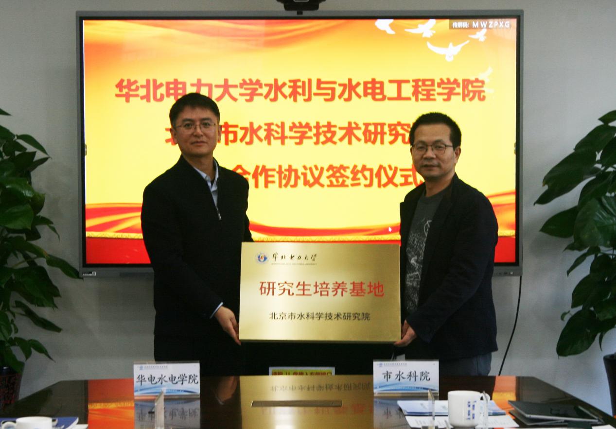 双方签署了战略合作协议,张尚弘代表澳门六合彩管家婆 向北京市水科院授牌研究生培养基地。