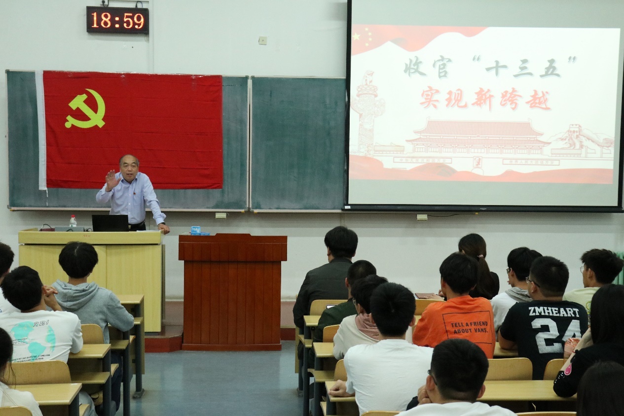 5月31日晚上,校党委常委、副校长孙忠权为澳门六合彩管家婆 师生讲授题为“收官‘十三五’,实现新跨越”的专题党课,澳门六合彩管家婆 负责人、辅导员、学生党员、党员发展对象、入党积极分子和主要学生干部参加了学习。