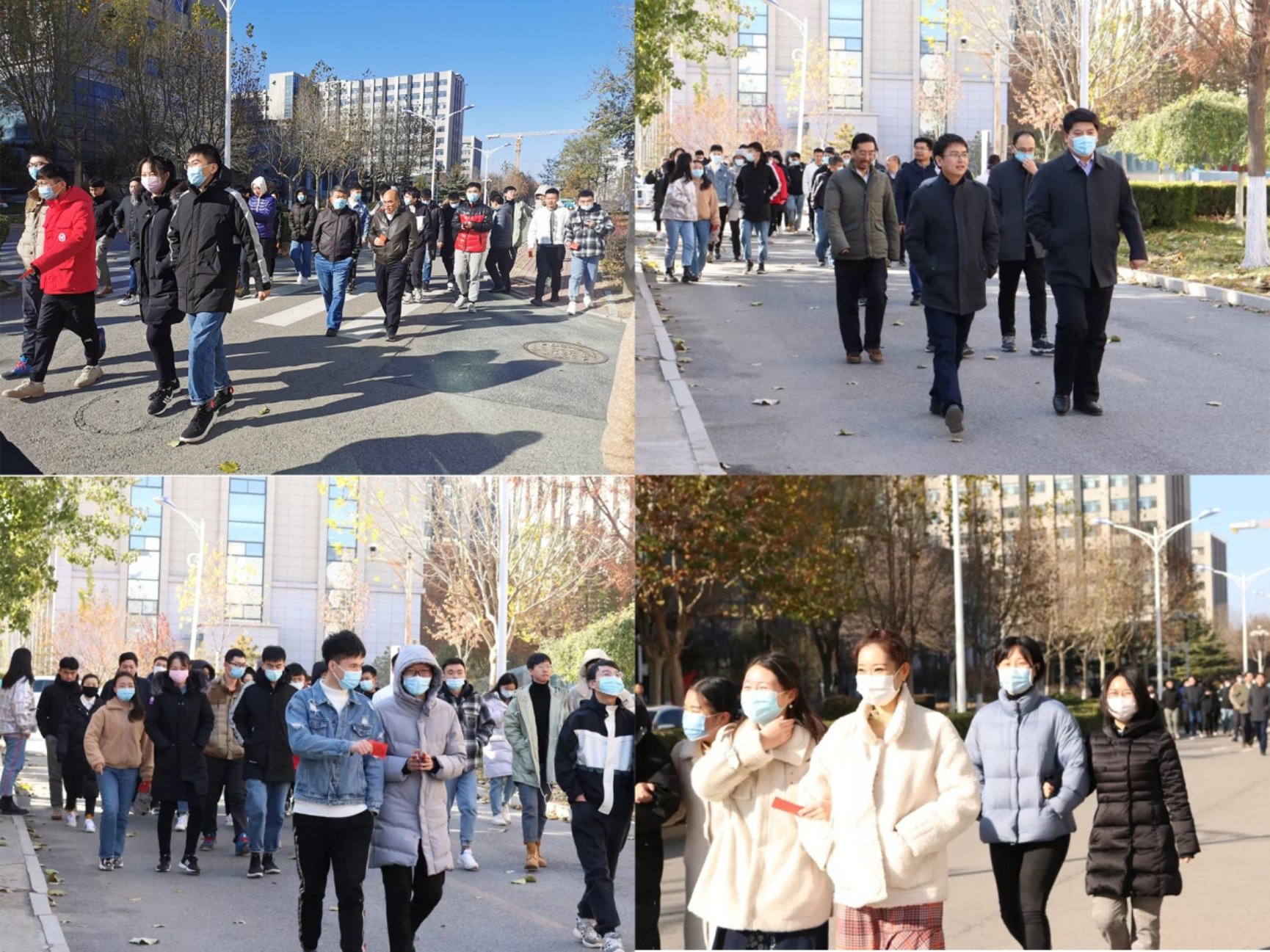 本次健步走活动的起点为主楼礼堂东广场,全体参与师生在东广场进行合影,领取起点小票,给彼此加油打气,在欢声笑语中开始了环校一圈的运动之旅。