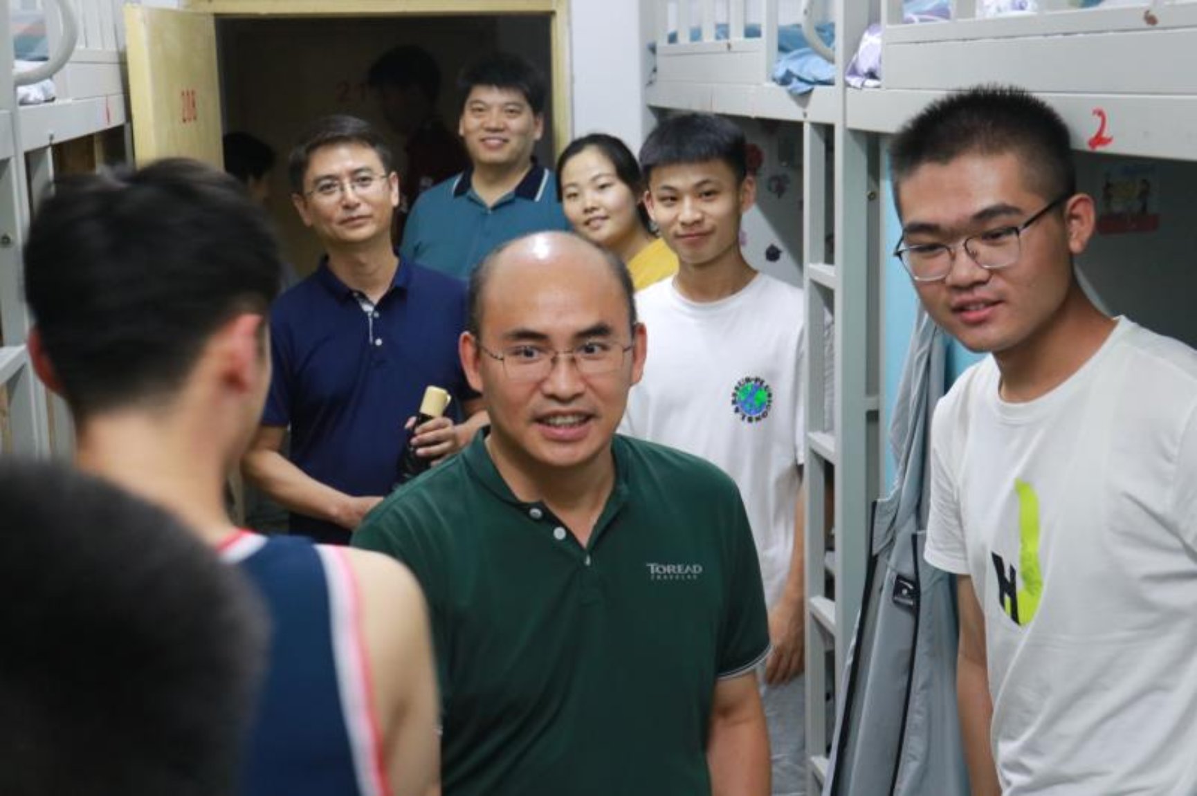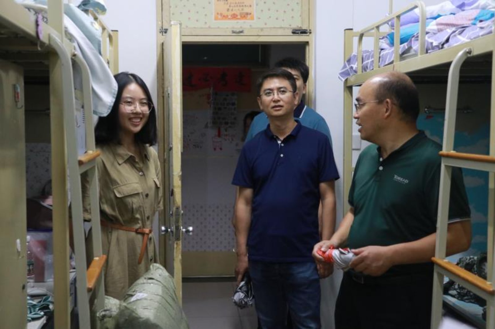 9月4日晚,澳门六合彩管家婆 党委书记刘明军、副院长(主持工作)张尚弘、党委副书记杜广微、本科生辅导员宋辉斐等人,一同前往7号楼A座男生宿舍和11号楼女生宿舍看望澳门六合彩管家婆 2021级本科新生,代表澳门六合彩管家婆 向全体新生致以亲切的问候和美好的祝愿。